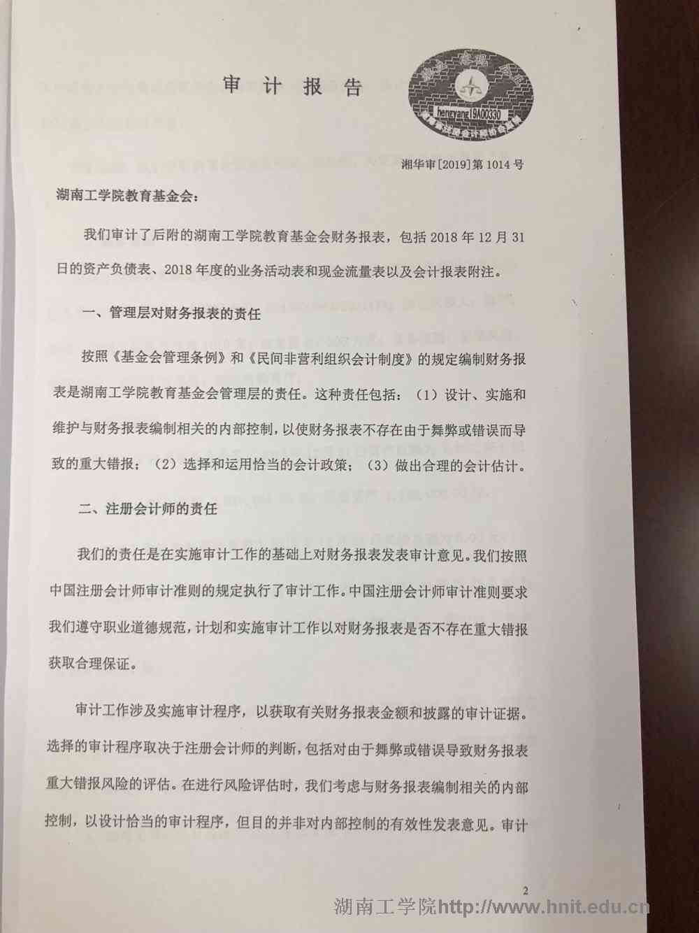2018年金沙990线路检测教育基金会审计报告-金沙990线路检测