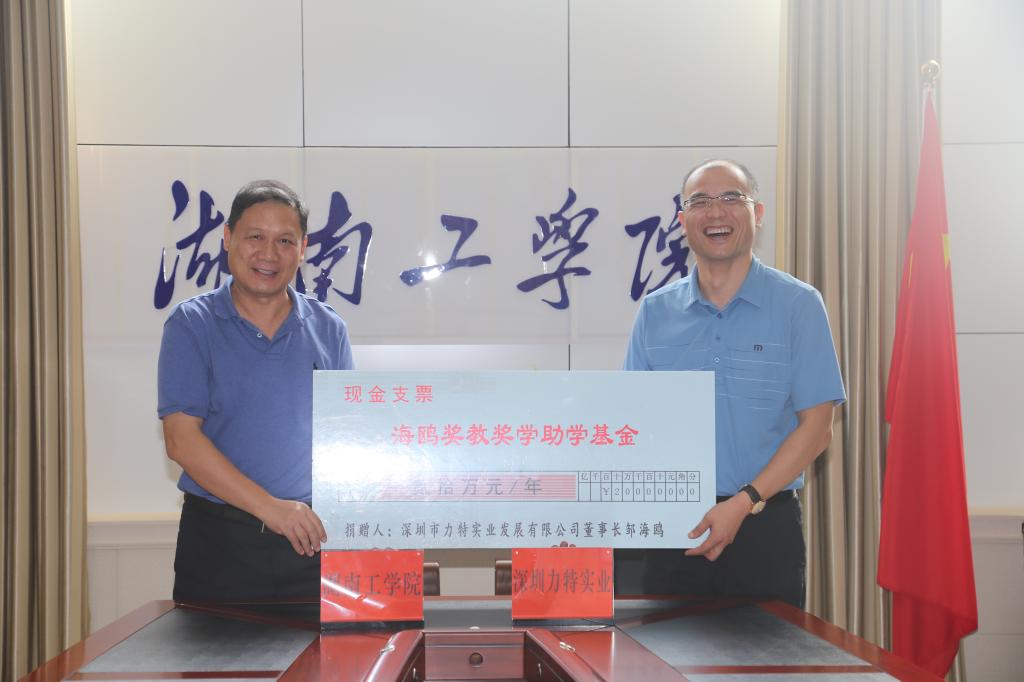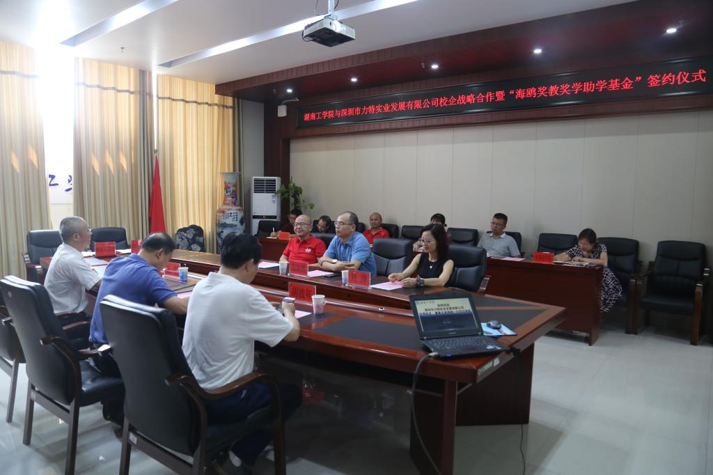 9月16日下午,金沙990线路检测与深圳市力特实业发展有限公司校企战略合作暨“海鸥奖教奖学助学基金”签约仪式在教学大楼12楼会议室举行。校长罗建华,校党委副书记、教育基金会理事长张平,原校领导、教育基金会副理事长胡波年,优秀校友、深圳市力特实业发展有限公司董事长邹海鸥,董事刘萍,总经理廖文胜出席签约仪式。仪式由发展规划与校企合作处处长、教育基金会秘书长刘文华主持。