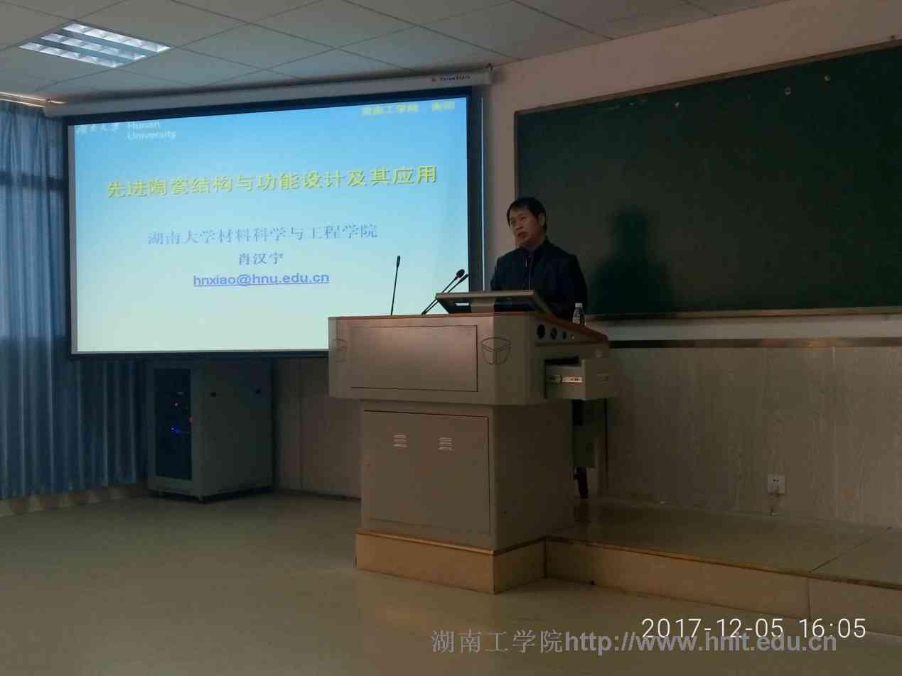2017年12月5日下午4点,湖南大学陶瓷研究所所长肖汉宁教授应邀在材化楼1301报告厅为大家作了一场题为“先进陶瓷结构与功能设计及其应用”的学术讲座。讲座由材料与化学工程学院李坦平副院长主持,材料与化学工程学院100多位师生参加了本次讲座。