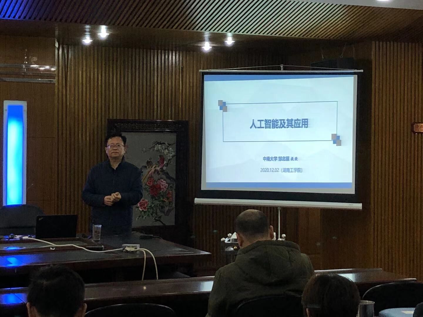 12月2日,中南大学博士生导师邹北骥教授应邀来我院开展了题为“人工智能及其应用”的学术讲座。讲座由学院院长罗庆云主持,学院全体教师、学生代表等聆听了报告。