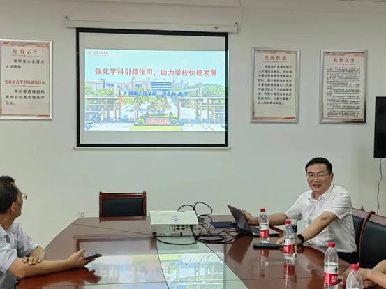 会后,邓永和教授了解了我校物理学科的现状,对我校物理学科前期取得的成效给予了充分肯定,并结合自身在学科建设方面的经历提出了宝贵的建议。