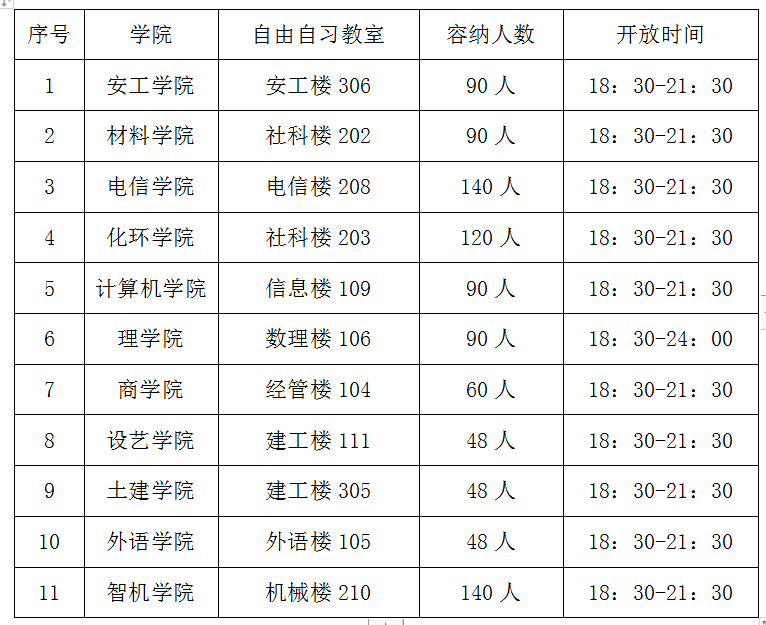 二、根据上述情况现将自由自习教室安排调整如下:
