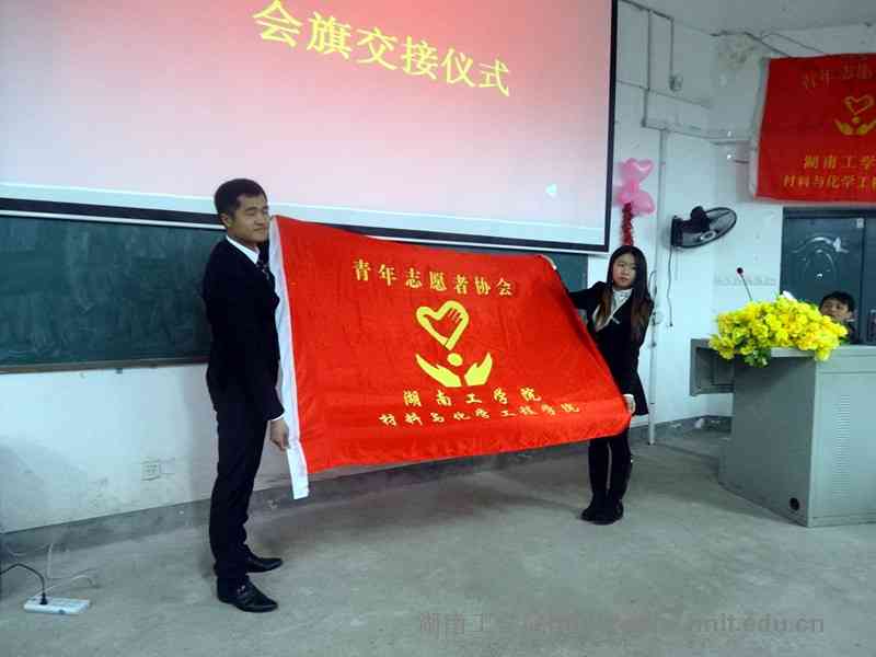 杨聪斌宣读第七届青年志愿者协会主要干部名单并颁发聘书,第六届青协会长刘赛丹做述职报告,第七届青协会长刘小龙做就职演讲并带领全体志愿者庄严宣誓,会旗交接,青协干事共同唱响《青年志愿者之歌》,志愿服务、无私奉献、传递温暖、美好明天。