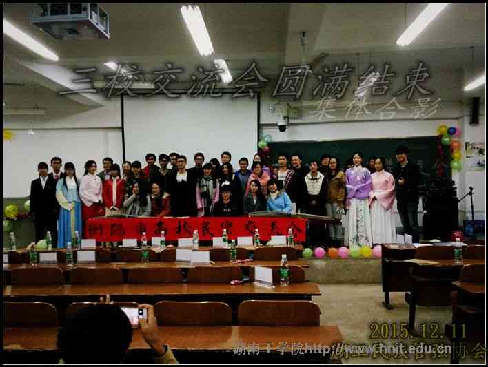 2015年12月11日,金沙990线路检测民族管弦协会、衡阳师范学院馨锐民乐社、南华大学清风器乐社联合举办的交流会在机械楼4508举行。