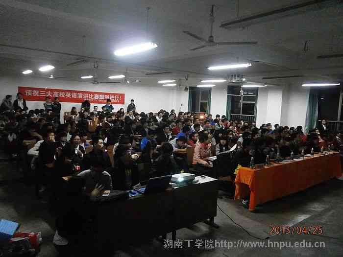 为了从我校选拔优秀人才参加衡阳市第五届三大高校联合英文演讲比赛,2013年5月3日晚,由金沙990线路检测学生社团联合会主办、校英语协会承办的湖工校区总决赛在3栋教学楼312教室如期举行。应邀作为本次比赛的评委有校英语协会指导老师王丹、我校英语老师殷海红、外教Ricky、以及2012年全国大学生英语知识竞赛获奖选手周国武、曹井超和黄双健,此次比赛获得了学府考研、鸿发驾校、巅峰时刻等机构的大力支持。