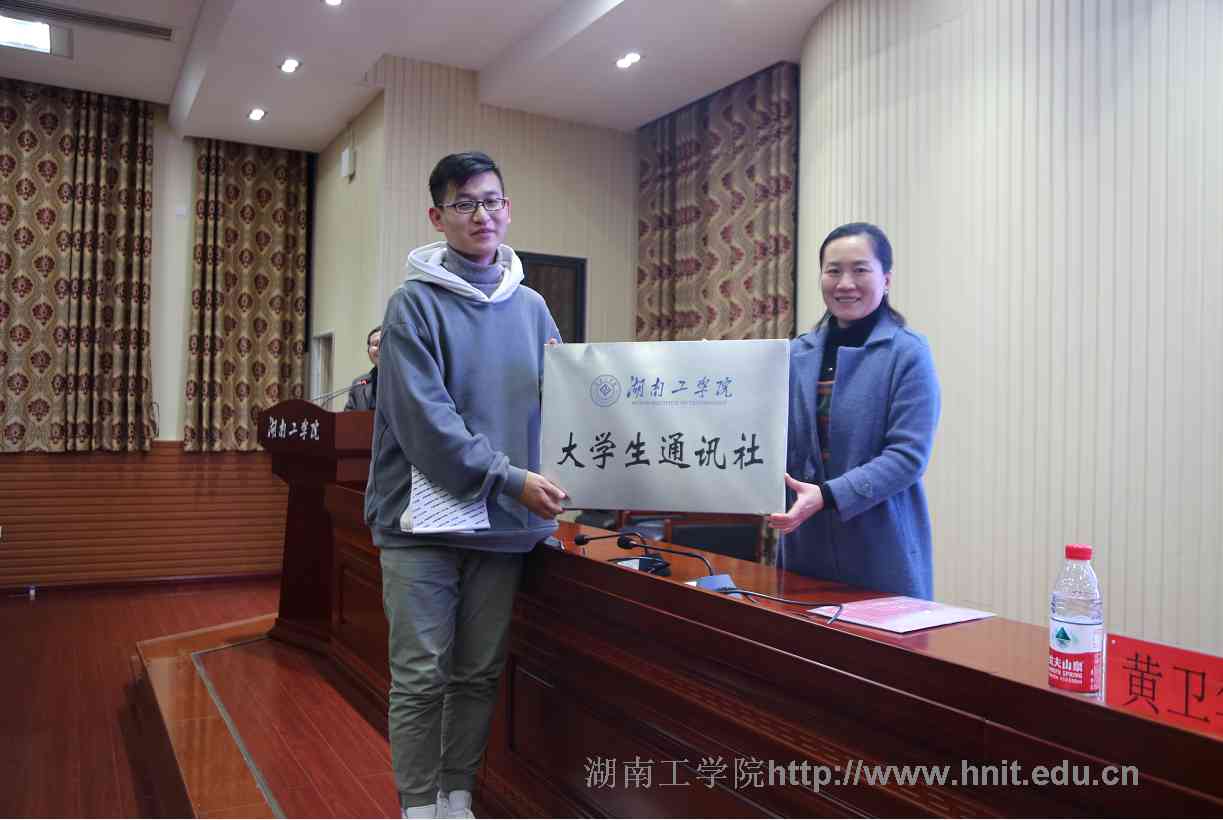 团委书记黄卫华为大学生通讯社授牌,为指导老师及理事会成员颁发聘书。