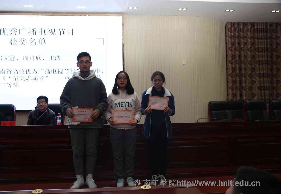 党委委员、宣传部部长袁勤为2016-2017年度湖南省高校校报好新闻奖、湖南省高校优秀广播电视节目获奖选手颁奖。