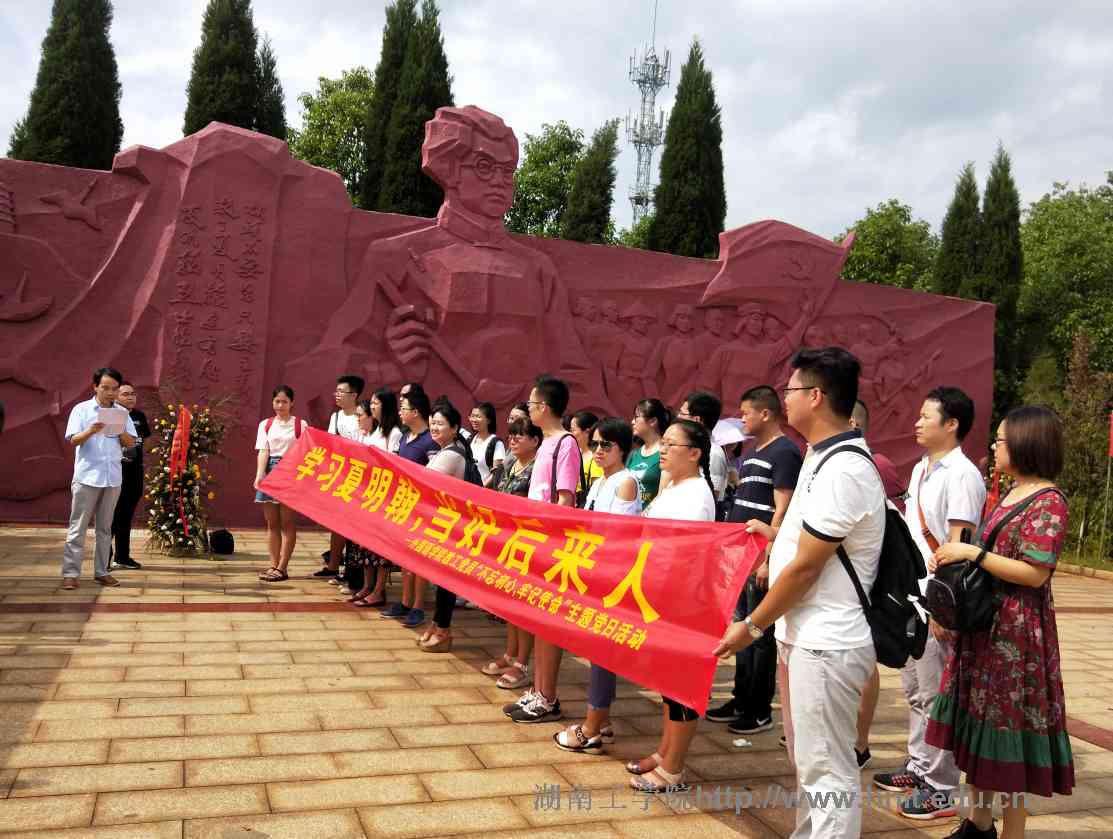 7月1日,商务英语教研室党支部牵头组织全院党员赴夏明翰故居探寻英烈足迹,感受夏明翰精神。夏明翰同志正是共产党人初心的最好体现,其舍生取义、大公无私、艰苦奋斗的革命精神都鼓舞着后人。在故居陈列着夏明翰及其家人舍身忘我的革命征程,全体党员通过讲解,感受了先辈的革命精神;随后,在夏明翰雕像广场,重温入党誓词,对照新时代下对中国共产党员的新使命和新要求,全体党员更加坚定了自身的共产主义信仰,不忘初心,牢记使命,争取做合格的后来人。(文图/王芳芳 外国语学院)