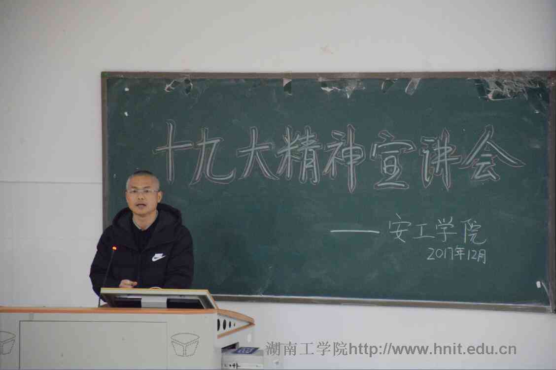 12月13日下午,校党委副书记张平在安工楼5601报告厅宣讲十九大精神。安工学院全体教职工、学生党员与体育教学部全体教师共计140余人聆听了本次讲座。