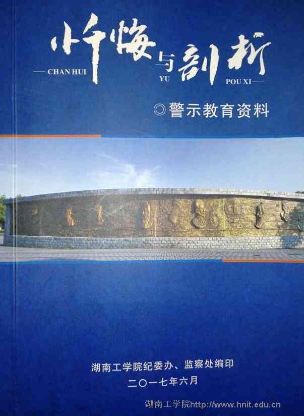 《忏悔与剖析》择录十八大以来各领域被查处的高级官员的《忏悔录》共计20篇,并根据“六大纪律”对材料进行分类整理,汇编成廉洁警示小册子。为深刻剖析案件原因,每个案例都配有简要案情,同时辅以剖析警示。为更切合实际,增强警示教育的针对性、实效性和震撼力,以身边事教育身边人,《忏悔与剖析》还特别对湖南省3所高校相关领导落马后的《忏悔录》进行了剖析,用发生在身边实实在在的案例引起共鸣,引导全校党员干部牢固树立廉洁意识,做到清廉从教,廉洁做人。(陈平