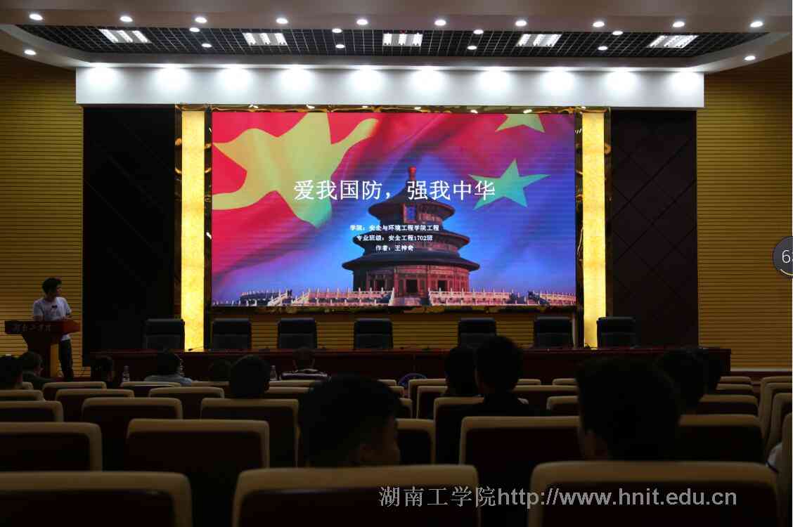 参加本届大赛的选手,由各二级学院预选赛后报送,经过校级层面的演讲稿评比,确定11位选手参加现场决赛。整场比赛气氛热烈,高潮迭起。比赛中,各位选手紧紧围绕“爱我国防”这一主题,以饱满的精神状态和富有号召力的演讲内容,为观众带来了一场震撼心灵的听觉盛宴。在11名参赛选手中,来自建工学院的李茂森和外国语学院的刘妮丹经过了军营的洗礼,他(她)们飒爽的英姿和在军营经历的感人事件令现场听众为之动容。其他选手或分析身边事例、或回顾历史、或放眼当今世界、或研判未来形势,表达了学生们对保家卫国战士的崇敬之情,抒发了当代大学生的报国情怀和凌云壮志。