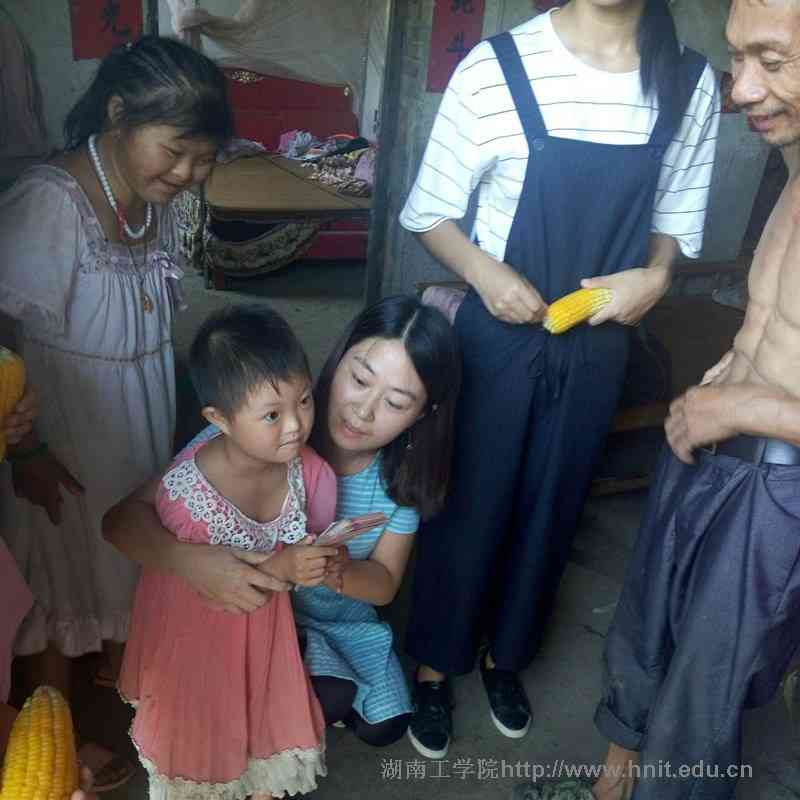 在周艳红一行步往贫困户戴香香家途中,村委书记简单介绍了香香一家的情况。到达香香家门口时已经是上午十点,大家发现门口一个四岁左右的小女孩端着一碗白饭,桌子旁站着一个个子矮小的女人和一位老奶奶。村委书记一一跟周艳红他们介绍,小女孩就是10岁的香香,桌子旁那个残疾女人就是香香的妈妈,老人就是香香的奶奶,香香的爸爸在地里干活去了。他们对眼前的一切感到手无所措,香香对大家的到来却没有任何反应。村委书记跟他们说明了周艳红一行走访的目的,于是两名学生跟老奶奶进行了交流,周艳红凑近香香耳朵边,大声跟她说话,香香没有表情反应。她奶奶跟随队学生讲香香至今都不会说话,个头很矮小,香香的爸爸也是残疾人,只能干点农活,没有收入来源,所以也没有到医院去检查。