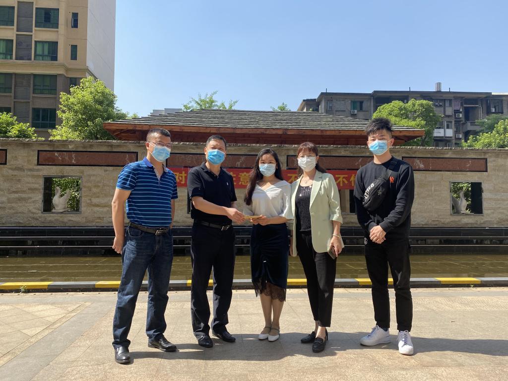 5月12日上午,艳阳高照,联系校领导罗建华校长来到金色蓝庭小区,看望慰问机械工程学院湖北籍的毛艳丽老师,送去了慰问金和抗疫物资用品,机械工程学院党政主要领导及学工办陪同慰问。