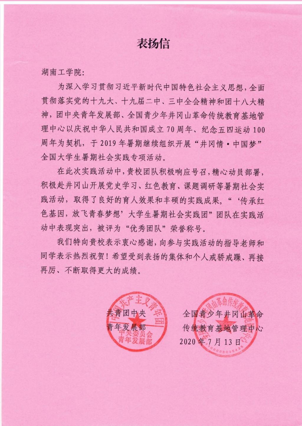 一封来自共青团中央青年发展部的表扬信-金沙990线路检测