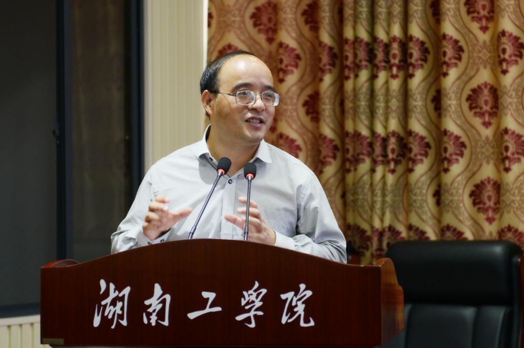 论坛闭幕式上,大会主席李正辉教授阐述了论坛的背景和政策,下一届风险管理与金融统计论坛承办单位厦门大学郭晔教授上台讲话,并向与会专家发出诚挚邀请。图为大会主席李正辉教授讲话。(宣传部 经济与管理学院)