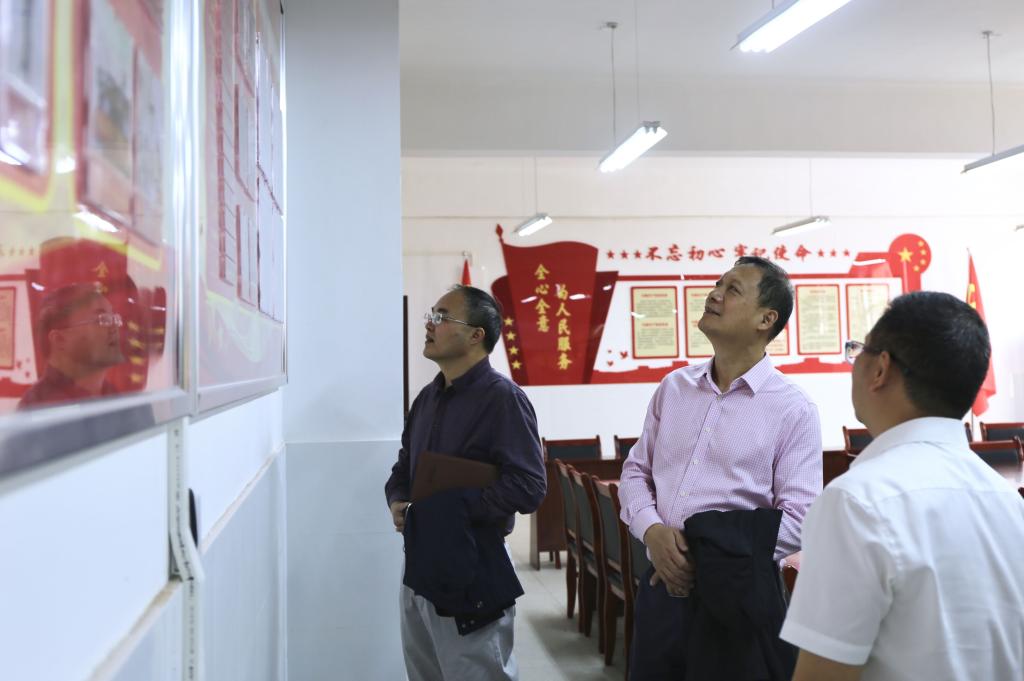 罗建华还参观了建工学院党员活动室,他指出建工学院在党建方面的一些好的做法值得其他学院借鉴。(文/蒋志刚 图/刘歆昱)