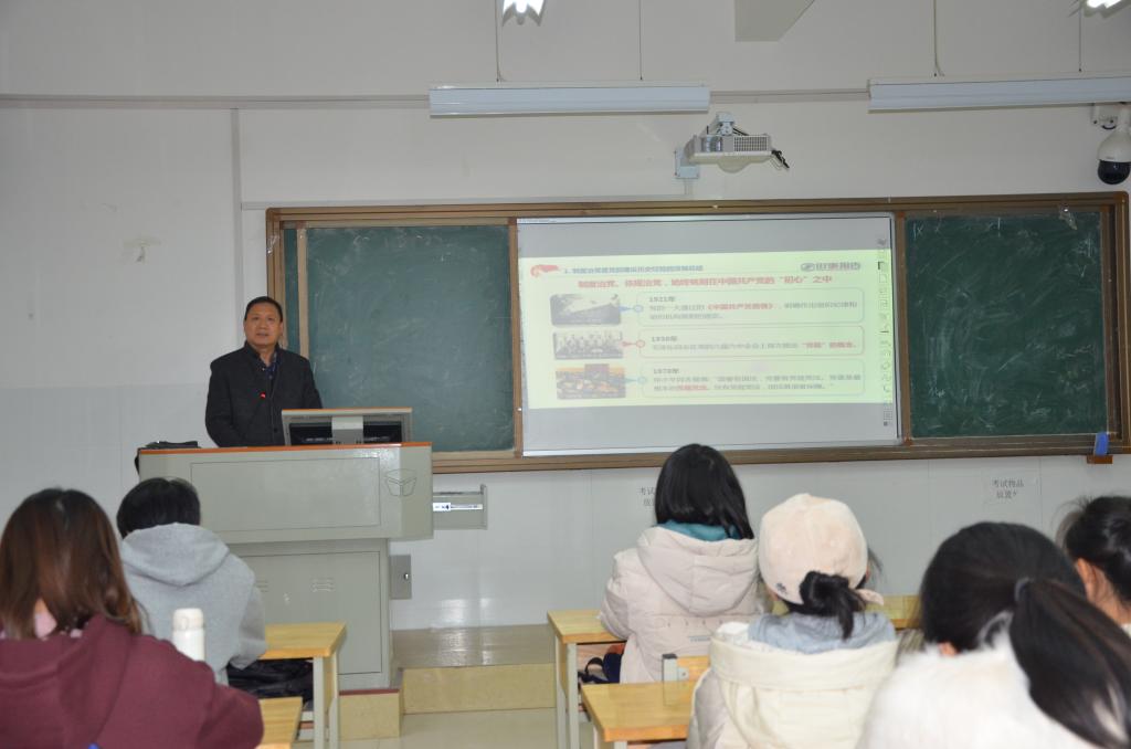 为全面贯彻落实《中共中央国务院关于加强和改进新形势下高校思想政治工作的意见》和我校思想政治工作会议精神,教育引导学生进一步坚定理想信念,按照学校2020年下半年《形势与政策》课教学计划安排,12月2-5日,校党委书记谢国保教授,校长罗建华教授,校党委副书记张平教授和副校长刘俊学教授、胡穗教授分别走进课堂,为2020级新生讲授了《形势与政策》课的《弘扬宪法精神、深化依法治国》、《制度治党:全面从严治党的重要保障》和《深入学习理解习近平总书记教育重要论述》三个专题。