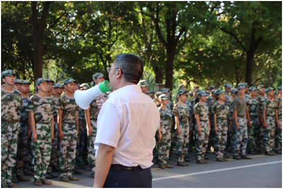 每逢佳节倍思亲,刘龙昌向所有同学表达了节日的祝福,同时对新生们寄予了殷切地期望。他勉励同学们:第一,作为新时代青年要牢固树立国防意识,军队强大,才能国泰民安,要通过军训,提高思想境界;第二,要学会坚守,持之以恒,要坚定理想信念,在服务人民、奉献社会的实践中实现人生价值;第三,要有不怕苦、不怕累的硬汉精神,将军训中形成的优良作风延续到今后的学习、生活、工作中去。