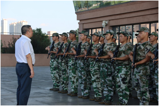 校领导的到来,让大家感受到了学校的温暖和关爱,鼓舞了带训教官和军训学子,大家纷纷表示,将牢记期望和嘱托,发扬不怕苦、不怕累的精神,圆满完成军训任务。(文/唐少军 宋怡欣 杨鹏 图/陈小章)