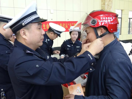 为持续推进衡阳市“戴帽工程”专项行动,增强我校师生的交通安全意识,11月24日下午,学校保卫处联合珠晖区交警大队在我校阳光服务中心开展衡阳市“戴帽工程”进校园宣传活动,党委委员、副校长黄红卫出席活动现场,珠晖区交警大队教导员李福清、副大队长谭帅带队,带领交警向师生宣传“一盔一带”等交通安全知识,普及交通法律法规基本常识,并免费向教职员工发放电动摩托车骑行安全头盔130余个。