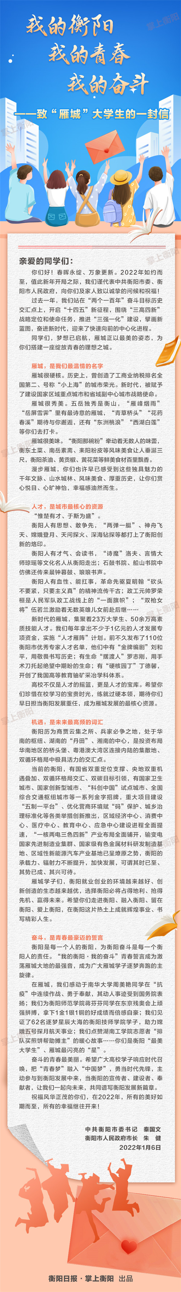 雁城莘莘学子,这里有一封市委书记、市长给你们的信,请查收!