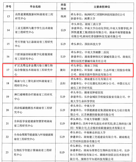 喜报:我校获批矿区及周边多金属污染土壤生物综合修复技术湖南省工程研究中心-金沙990线路检测