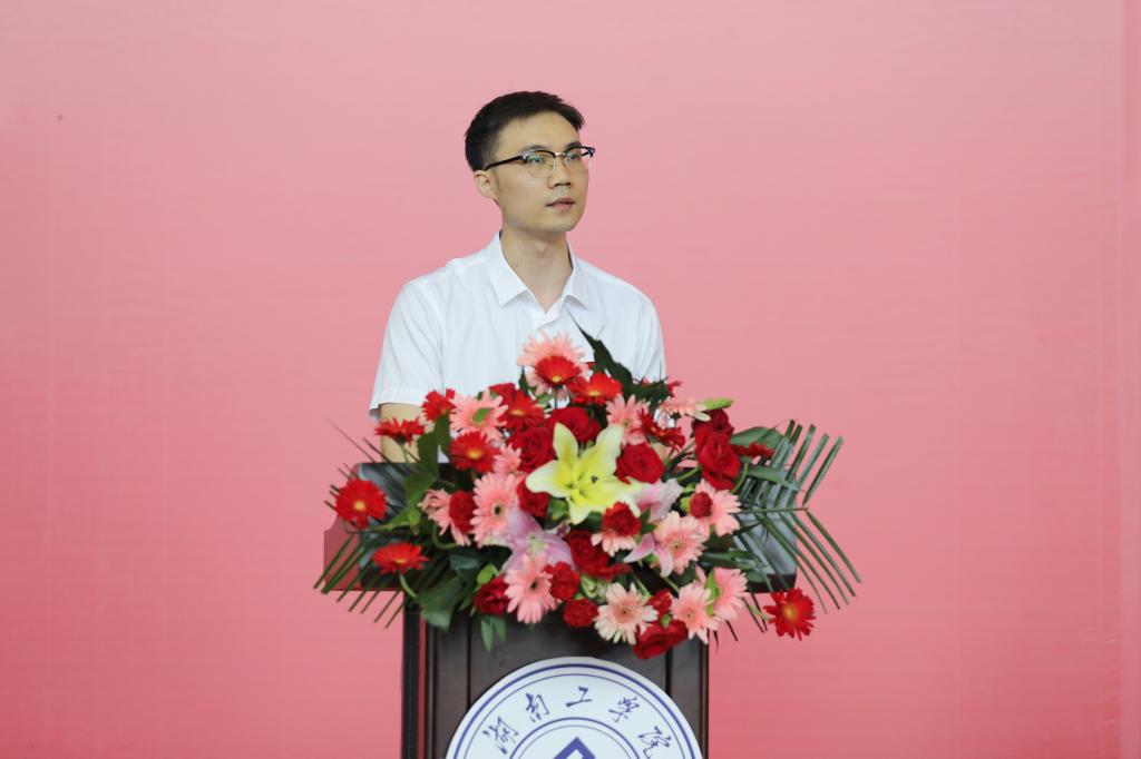电气与信息工程学院副院长何西博士作为教师代表发言,他与毕业生们一起回忆了过去四年珍贵的大学时光,深情寄语即将步入社会的青年学子,要学会自我思考,不断自我学习,时刻保持善良,为祖国的发展大展宏图。