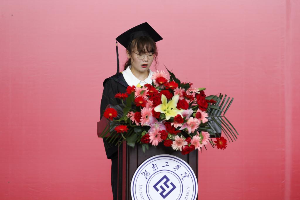 安全与管理工程学院安全工程1804班的秦欢同学作为优秀毕业生代表发言,他分享了自己大学四年的收获与感悟,感恩母校和师长的悉心培育,表示将不负老师们的殷切期盼和深切嘱托,一定会做胸怀大志并脚踏实地的人,做负有责任并勇挑重担的人,做拥有智慧并富有激情的人。