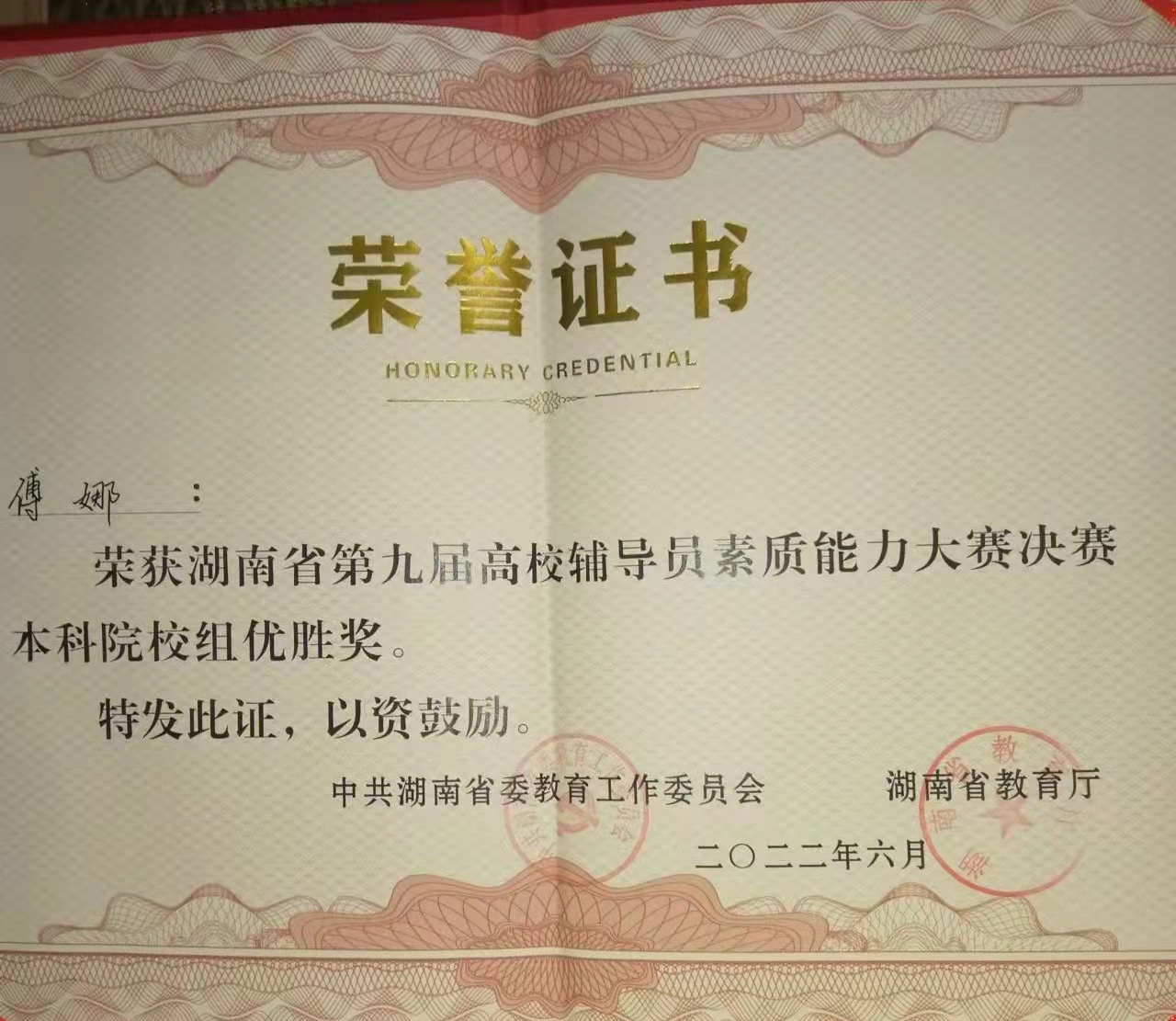 团队协作 智囊同行——我校辅导员傅娜荣获湖南省第九届辅导员素质能力大赛决赛个人优胜奖-金沙990线路检测