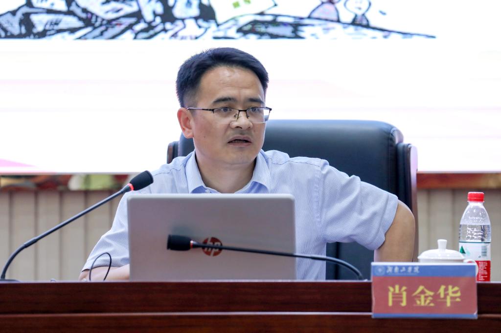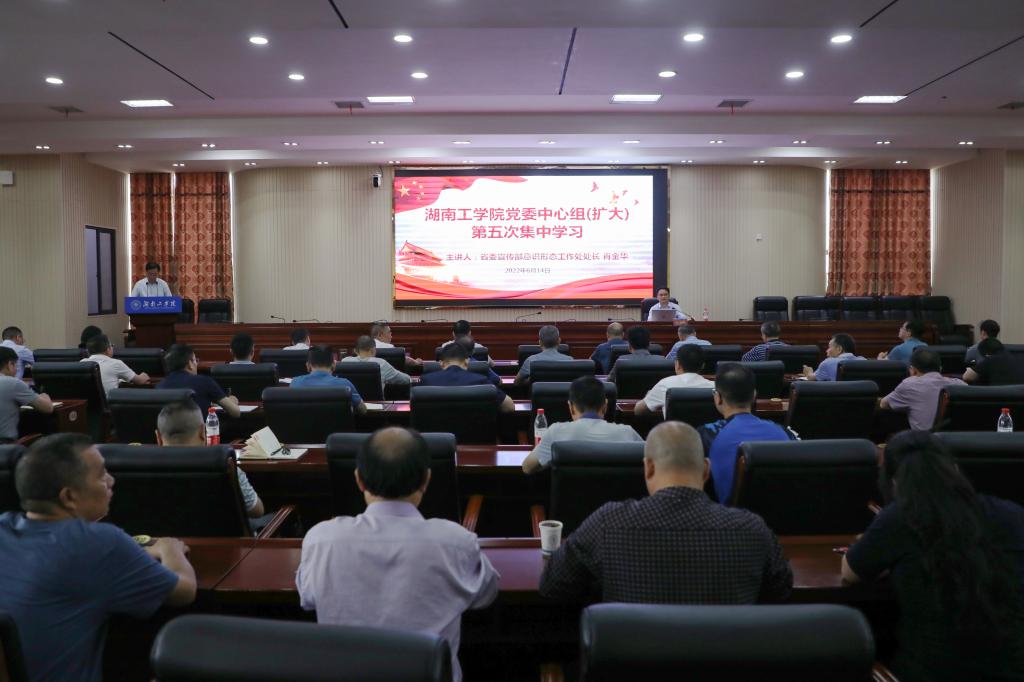 6月14日上午,学校党委理论学习中心组(扩大)在教学大楼12楼报告厅举行2022年第五次集中学习,邀请了湖南省委宣传部意识形态工作处处长肖金华作意识形态工作专题辅导报告。党委书记宋克慧主持报告会。