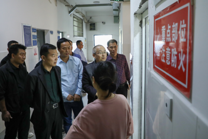 曹执令一行对危化品储存、使用、废弃处置部位、学生宿舍、创新创业园、乒乓球馆、大学生活动中心、学校门岗等重点部位进行了检查。详细核查了前期排查的风险隐患整改情况;查看了进出校园人员登记记录,询问门岗安保疫情防控查验、学生请假制度等防控要求落实情况;检查了创新创业园安全施工情况及乒乓球馆、大学生活动中心、学生宿舍等人员密集场所消防安全情况。