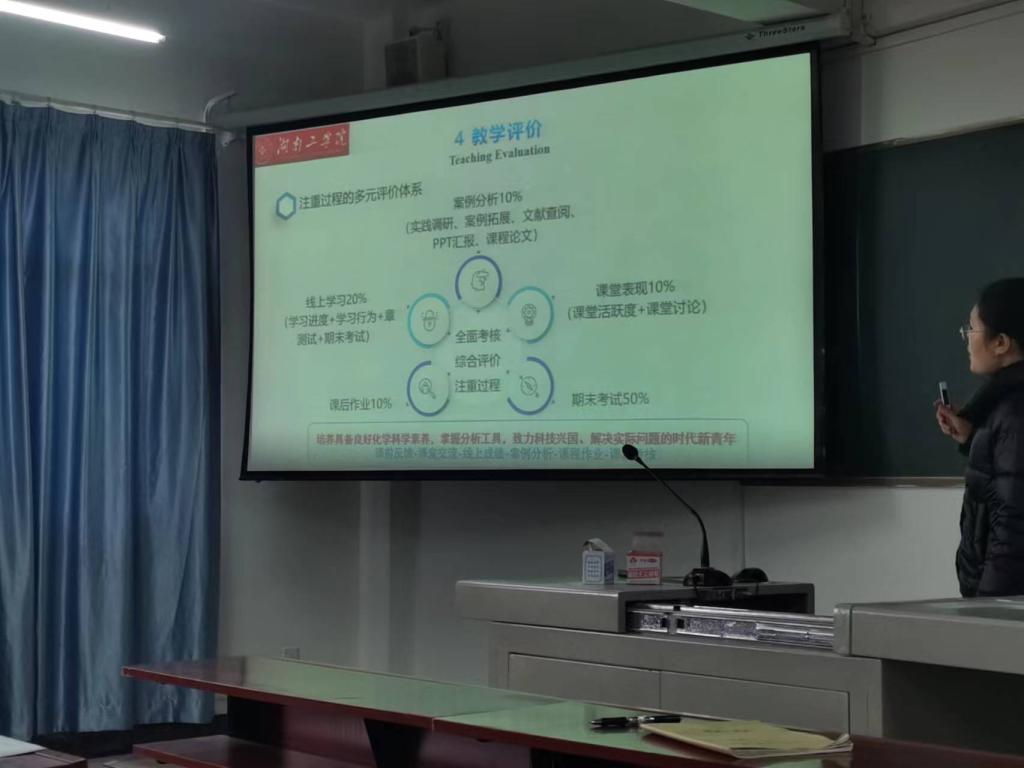 据悉,化学与环境工程学院此次磨课既磨出了教学目标明确、教材内容处理得当、学情了如指掌、教学特色明显等很多好的教学经验供全院教师学习,磨出了教学模式成旧,拓展学生思维、培养学生能力等方面需进一步加强,教学中的“问题”意识不够,知识储备不足,思政元素融入不够自然,融入深度有待加深等问题。化学与环境工程学院表示下一步将对照问题,通过示范教学、说课评课、专家指引, 帮助老师们在磨课中历练,在反思中不断成长。(文/肖中云 孙爱明 图/孙爱明 审稿人/一审:李琪 二审:彭国柱 三审:肖中云 )