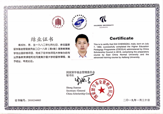 戴成秋等两位教师获国家留学基金委资助赴丹麦奥尔堡大学进修高等教育教学法