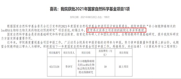 李泽军教授两次获得国家自然科学基金面上项目
