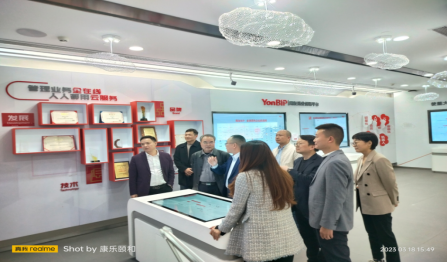 在新道科技股份有限公司,何建雄一行参观了用友数智企业体验馆,观摩了用友在智能财务、智慧营销、数智人力、工业互联网、教育等领域提供的数智化应用场景和模式,了解了大数据、人工智能、区块链等新技术发展对各领域人才的新挑战和新要求,实地感受了行业企业以数智化转型赋能教育的实践探索。双方围绕数智人才培养解决方案和产教融合发展等议题进行了研讨和交流,针对产教融合合作模式进行了深入讨论,均表达了合作共赢,共谋发展的意愿。