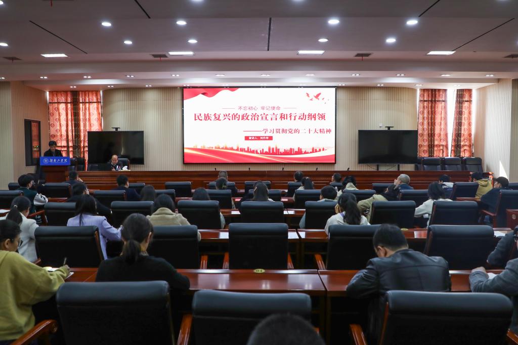 组织部、党校、教务处(教师发展中心)、教学质量监控与评估办公室、创新创业教育中心、现代工程技术实践教学部(材料分析检测中心)、少数民族学生预科教育部、设计艺术学院、材料科学与工程学院教职工以及学生代表聆听了宣讲。(文/黄宝乐 图/刘歆昱 审稿人/一审:李琪 二审:彭国柱 三审:肖中云)