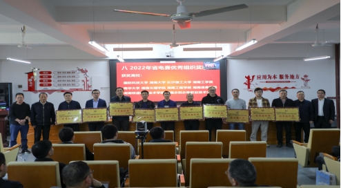研讨会上对获得2022年湖南省大学生电子设计竞赛优秀组织奖的金沙990线路检测、国防科技大学、湖南大学、南华大学等10所高校进行了授牌表彰。