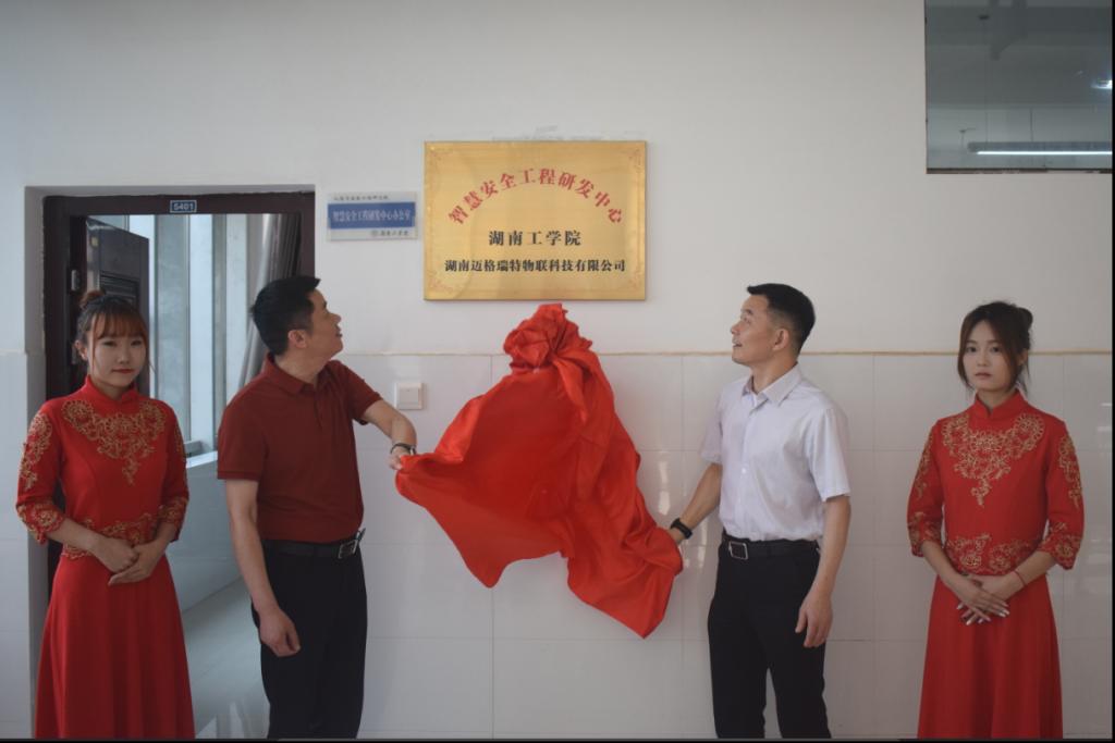 6月1日下午,智慧安全工程研发中心挂牌暨“1+N”智慧安全平台运行启动仪式在安工学院5401举行。湖南迈格瑞特物联科技有限公司董事长张利良、副总经理胡俊与我校校长曹执令、科技处处长方小勇、校友联络中心副主任罗晓君,研发中心主任胡鸿、副主任洪俊等参加仪式。