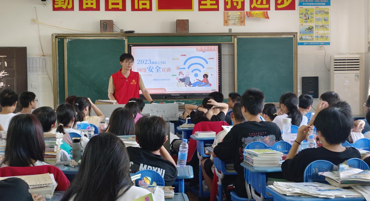 为助力推动“双减”政策,团队在祁东县栗山学校开设了网络安全科普课程。宣讲中,成员们向学生们讲述了网络安全的基本知识和防范措施,包括如何创建安全的密码与如何识别网络欺诈等实用技巧。