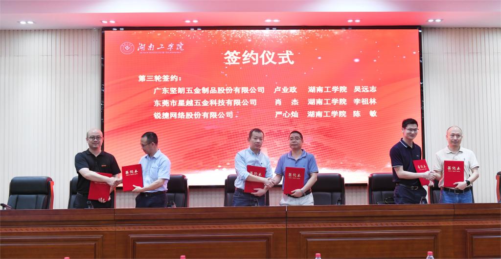 我校和衡阳六家省级以上高新产业园区、七家合作意向良好的行业企业签订了合作协议,首批“教授、博士”团队进驻企业。我校的博士科研团队还对建筑结构减振(震)控制技术、工模具及关键零部件表面涂层解决方案等4个重点科技成果进行了项目路演,并与企业进行交流。