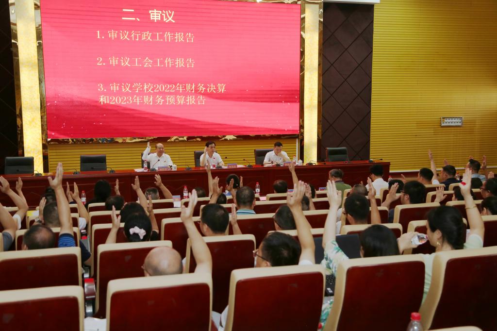 工会常务副主席周少华、财务处处长赵少平分别在大会上作了《工会工作报告》《学校2022年财务决算和2023年财务预算报告》。