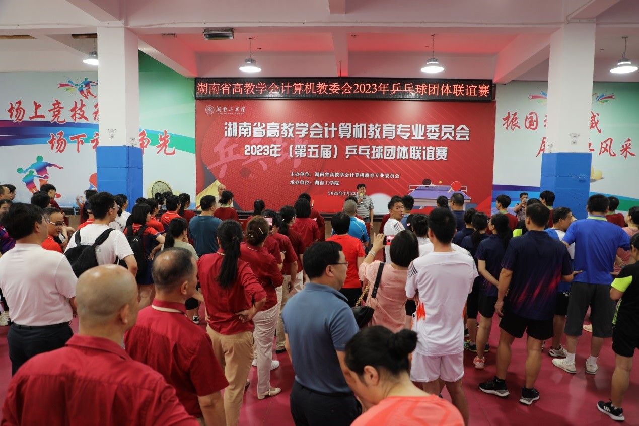 湖南省高教学会计算机教育专业委员会2023年(第五届)乒乓球团体联谊赛开幕式现场