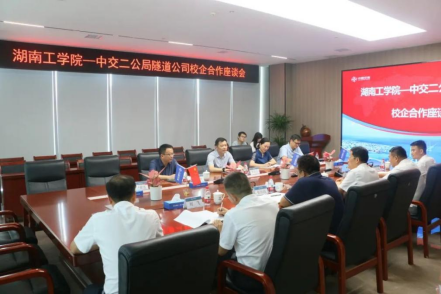 8月8日下午,曹执令校长率队考察了中交二公局隧道公司公司,校企双方举行了产学研合作座谈会,公司总经理张建国、党委书记张社歧,以及公司项目管理部、人力资源部与安全管理部等职能部门负责人出席了座谈会,会上双方就科技服务、工程技术研发与专业人才培养等方面进行了深入交流。张建国对曹执令一行的到访表示欢迎,他介绍了二公局及隧道公司的发展历程、经营状况、属地化布局与人才需求等情况,期待双方能尽快落地常态化“产学研”合作,推动校企双方在资源共享、优势互补与协作交流方面取得更多成果。曹执令介绍了学校办学现状、校企战略合作协议推进与深化校企产学研合作设想等情况,指出隧道公司落地长沙,实行属地化布局为校企双方深化合作奠定了更好的地域优势,希望双方基于校企战略合作协议与校企共建的智慧安全产业学院,把校企产教融合、工程技术联合攻关、科技成果转化与人才协同培养等合作不断推行新的高度,以取得更高质量成果,且校企双方就建立校企产教融合定期交流机制达成一致。会前张社歧陪同曹执令了考察了公司自行研发的安全生产远程智慧平台,在座谈会他指出公司布局长沙为双方加深合作提供了契机,公司及各项目可作为金沙990线路检测的人才实习实践基地,希望公司与学校建立起更为紧密的联系,充分发挥各自优势,探索校企合作新模式。