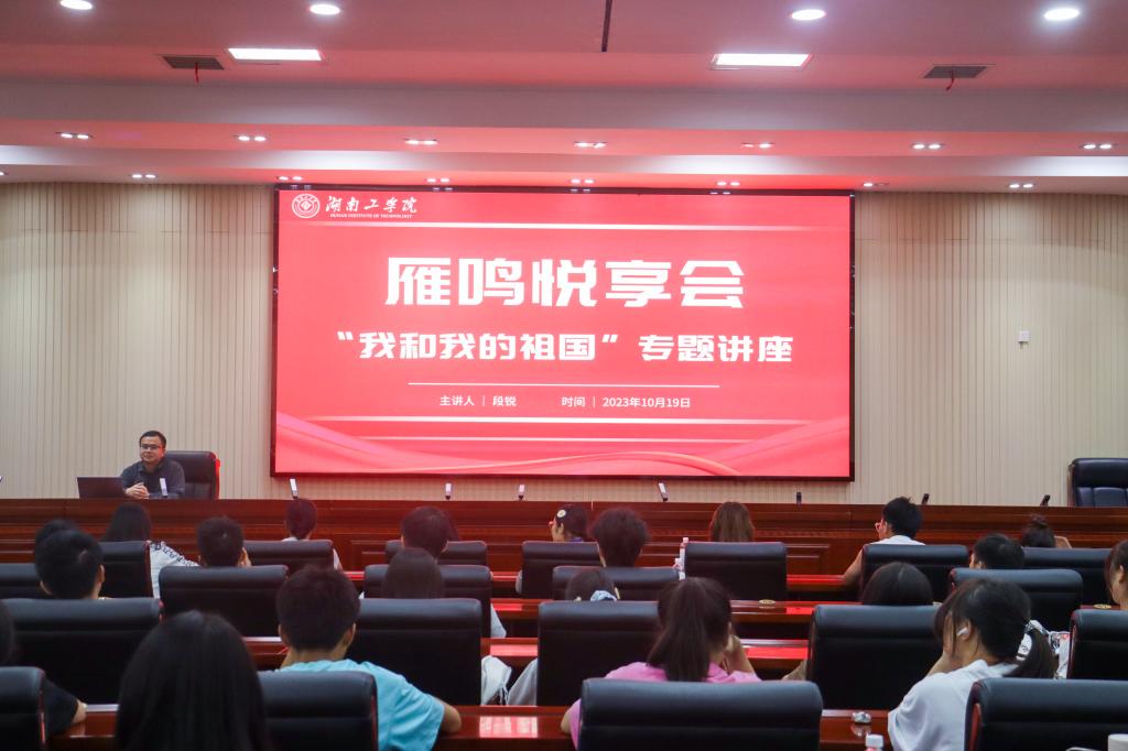 10月19日,我校在教学大楼船山报告厅开展雁鸣悦享会·“我和我的祖国”专题讲座,马克思主义学院副院长段锐博士担当主讲嘉宾。