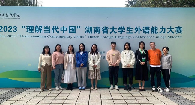 在湖南省教育厅主办的2023“理解当代中国”湖南省大学生外语能力大赛中,我校学生潘文倩、徐子青、王志军获分获笔译赛项个人一、二、三等奖、马燕获阅读赛项个人二等奖、唐明珠获演讲赛项个人三等奖。