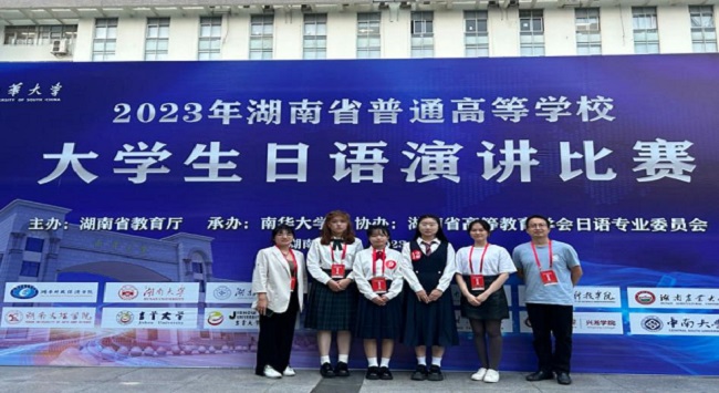 在湖南省教育厅主办、湖南省高等教育学会日语专业委员会协办的2023年度第十四届湖南省普通高等学校大学生日语演讲比赛中,我校荣获团体三等奖,我校学生李佳纯、王梓毓分获个人二、三等奖。