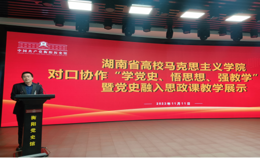 为全面贯彻落实党的二十大精神和习近平总书记对宣传思想文化工作的重要指示,11月11日,由我校马克思主义学院承办的湖南省高校马克思主义学院对口协作“学党史、悟思想、强教学”活动暨党史融入思政课教学展示在衡阳党史馆举行,来自南华大学、金沙990线路检测、湖南商务职业技术学院、湖南高速铁路职业技术学院、湖南财经工业职业技术学院五校马克思主义学院的180余名师生参加活动。