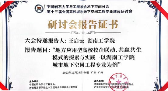 11月24日-26日,由中国岩石力学与工程学会、教育部高等学校土木工程专业教学指导分委员会主办,中国岩石力学与工程学会地下空间分会、广东工业大学承办的第十三届全国高校城市地下空间工程专业建设研讨会暨第七届高校城市地下空间工程专业青年教师讲课大赛和第七届高校城市地下空间工程专业大学生模型设计竞赛(简称“一会两赛”)在广州举行。我校城市地下空间工程专业带头人王启云教授携同专业教师刘潇潇、何根、曾佳君及六名学子参加了“一会两赛”并取得佳绩。