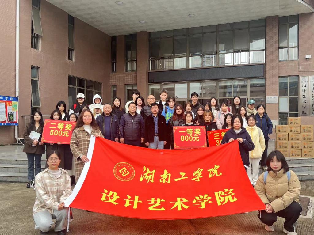 为深入推进“校友回湘”工作,服务学院高质量发展,3月14日下午,由2002级校友罗光德赞助的“恒鲜记”农产品包装设计比赛颁奖仪式在6105教室举行。工业设计2201班三个团队分获一、二、三等奖。设计艺术学院党政领导、辅导员参加了活动。