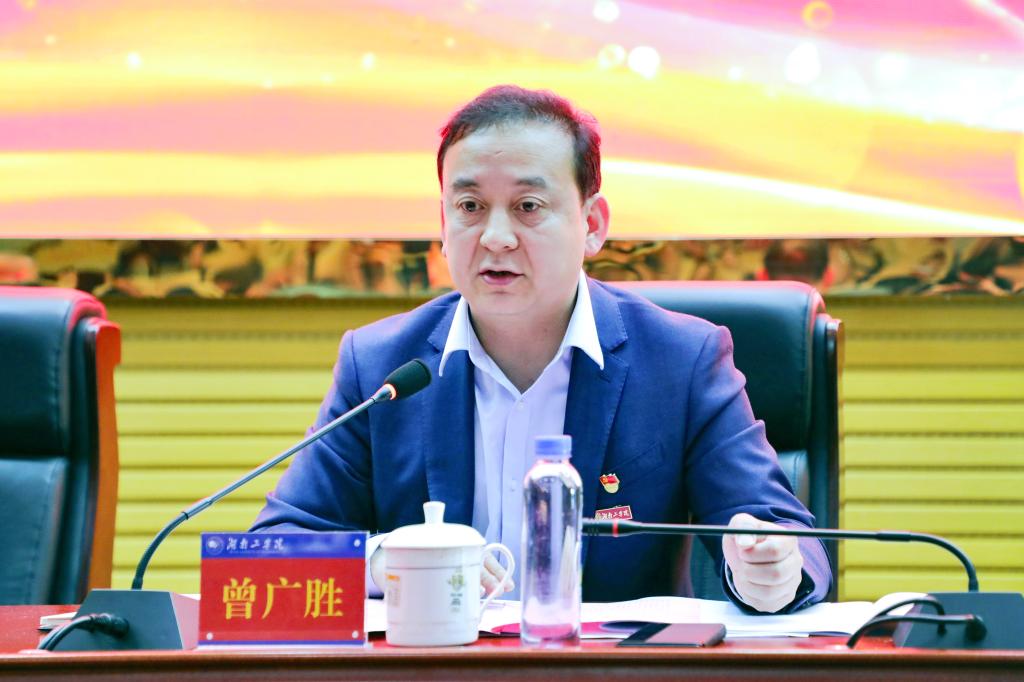 曾广胜强调,各部门单位、各基层组织会后要传达落实会议精神,要提高站位抓落实,不断增强全面从严治党的政治自觉、思想自觉和行动自觉。要融入发展抓落实,把推进全面从严治党与学校高质量发展深度融合。要聚焦重点抓落实,为早日建成特色鲜明的区域性高水平应用型大学而团结奋斗,为实现“三高四新”美好蓝图和教育强省建设作出新的湖工贡献。